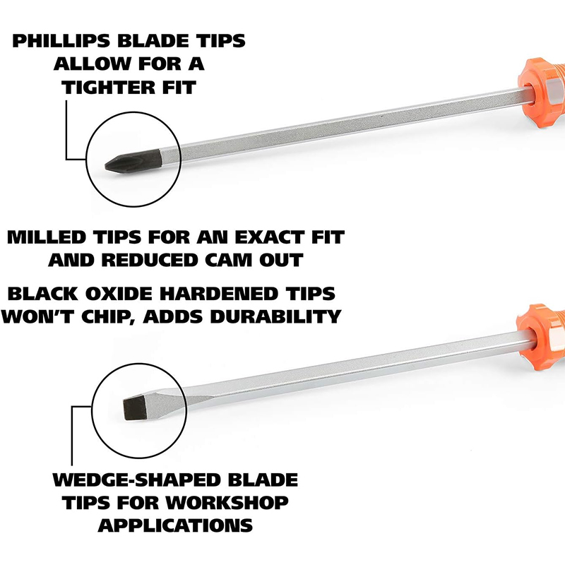 Ergonomic Non-Slip Handle:The ergonomic, non-slip orange handle is designed for a comfortable, firm grip, minimizing hand strain and maximizing control for efficient screwdriving in any task.