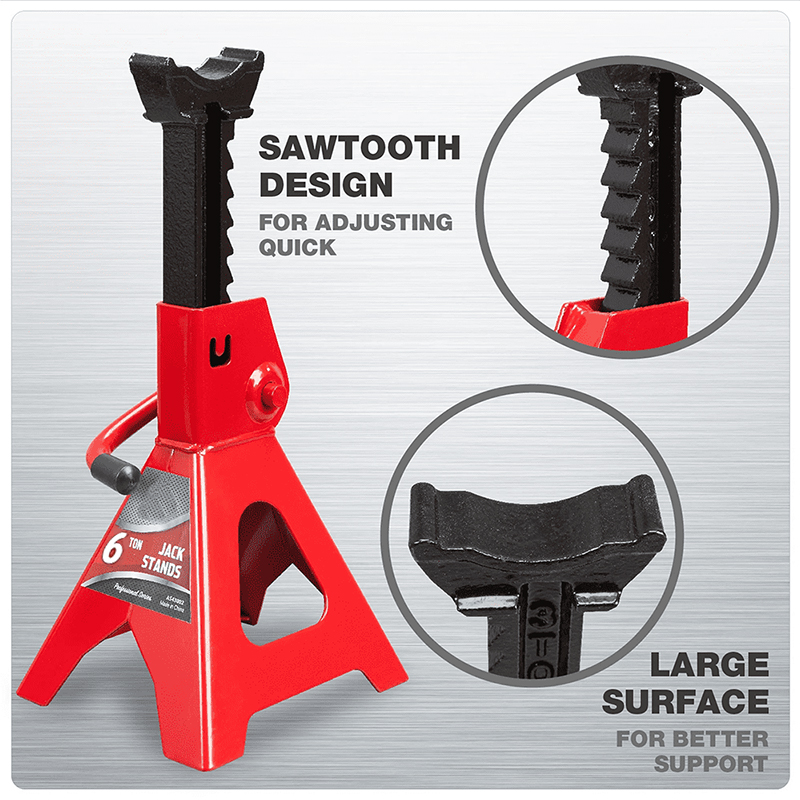 Heavy-Duty 6 Ton Load Capacity: Designed to handle up to 6 tons of weight, this jack stand provides robust support for trucks, SUVs, and commercial vehicles, ensuring maximum stability during undercarriage work.