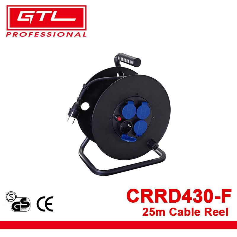 This cable reel comes with 4-way socket-outlets, housed in an IP44-rated PP shell for dust and splash protection. The H05VV-F cable ensures reliable insulation and mechanical strength, offering a 25m reach for flexible indoor/outdoor use in industrial setups like automation or packaging equipment