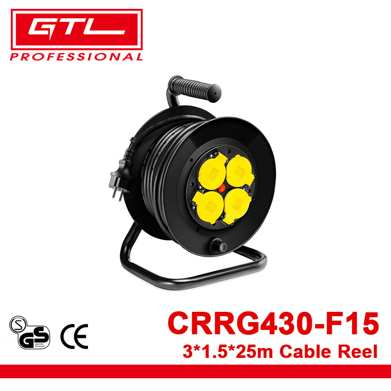 This cable reel comes with 4-way socket-outlets, housed in an IP44-rated PP shell for dust and splash protection. The H05VV-F 3*1.5*25m cable ensures reliable insulation and mechanical strength, offering a 25m reach for flexible indoor/outdoor use in industrial setups like automation or packaging equipment