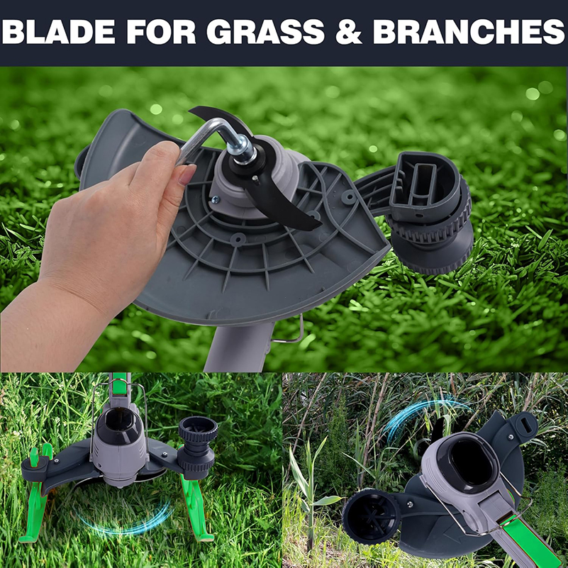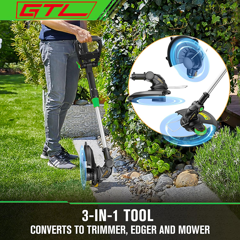 Powerful Cordless Trimmer/Automaric Power Off: GTL cordless weed wacker for lawn uses a blade-type, and the ultra-sharp blades allows you cut grass easily. Intelligent anti-burn machine technology automatic power protection, so that the machine will last longer.