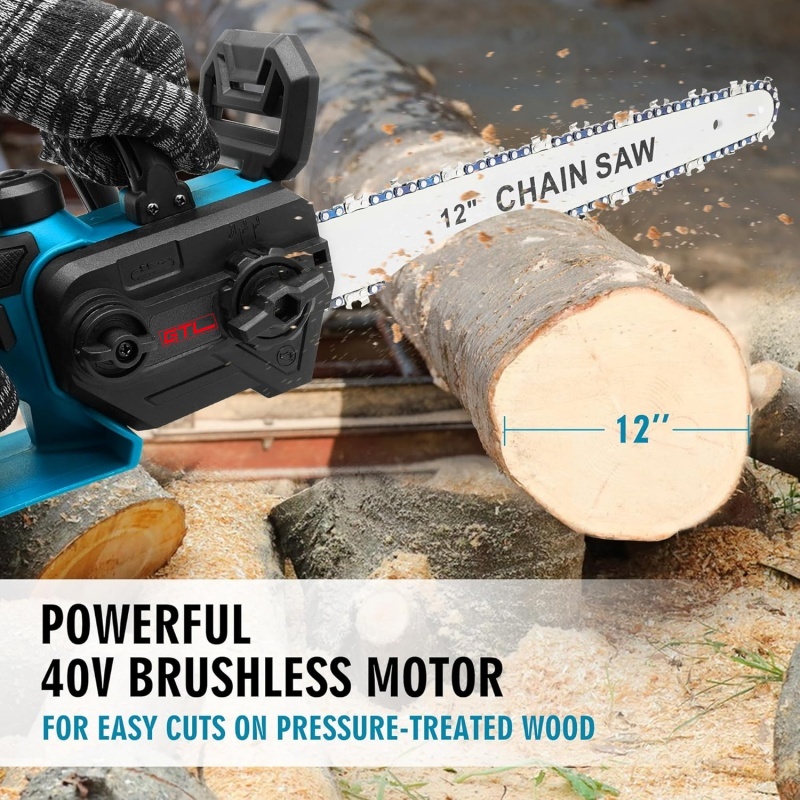 This cordless chainsaw features a 4.0Ah battery for over 30 minutes of use and a fast charger. Its high-performance brushless motor delivers strong, efficient cutting power. Lightweight with an ultra-narrow guide plate, it's compact and flexible for tight spaces. Tool-free chain adjustment simplifies maintenance. Perfect for pruning, gardening, and firewood processing, it combines portability and high efficiency for daily outdoor tasks.
