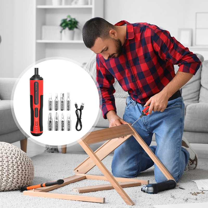Designed with LED working light and self-locking function, this portable screwdriver kit includes 8 replaceable screwdriver bits, a USB charging cable and a durable plastic storage box. It is lightweight, easy to carry and perfect for home maintenance, DIY craft and small assembly projects.
