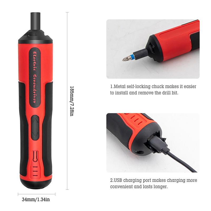 This compact cordless electric screwdriver comes with a 4V 2.0Ah built-in battery, delivering 5.0N.m electric torque and up to 10N.m manual torque. It supports both automatic and manual operation, featuring steady 230 RPM no-load speed for efficient daily screw driving work.