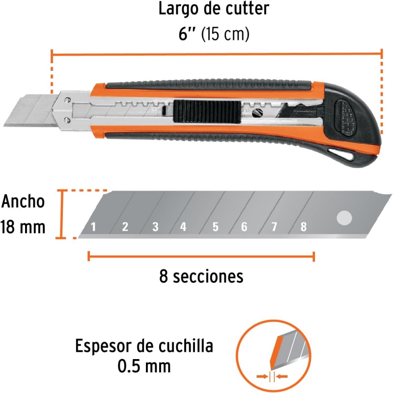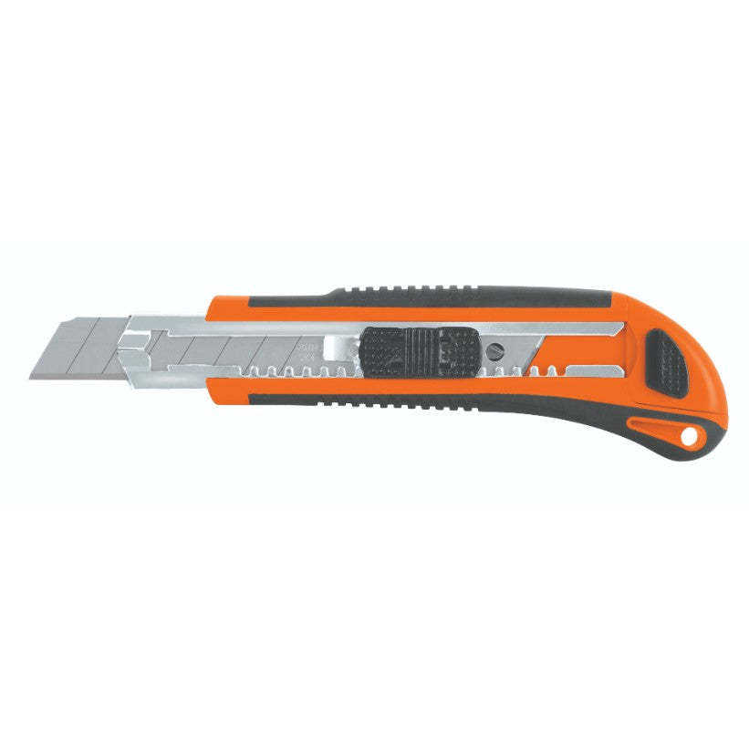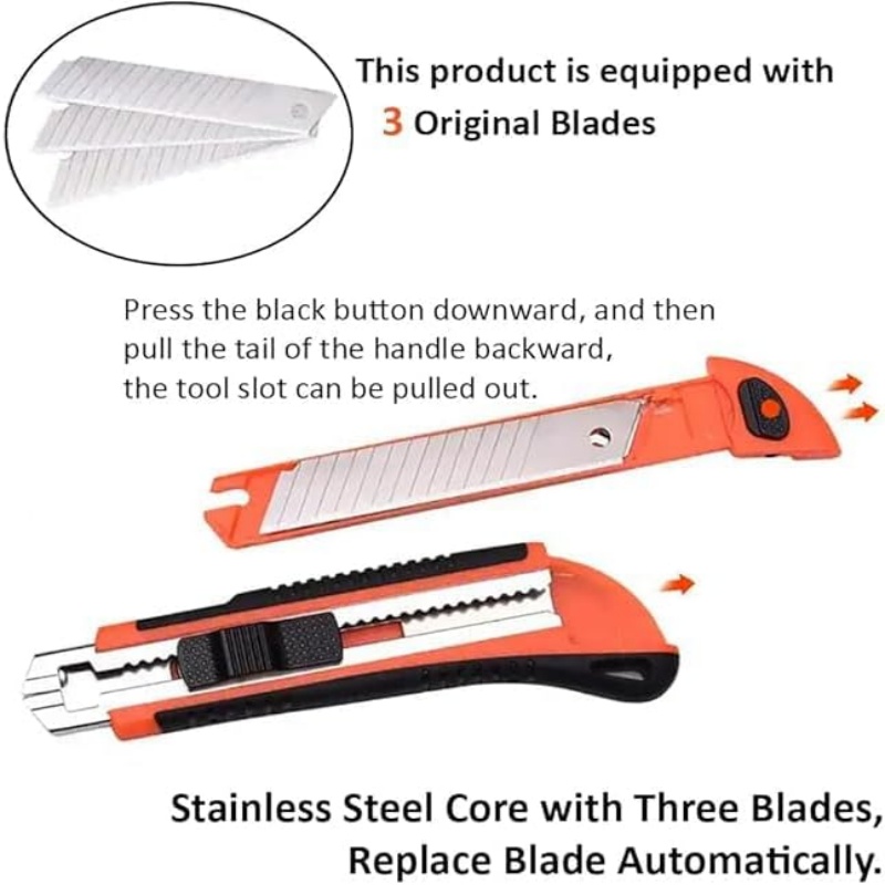Durable Construction: This utility knife features a heavy-duty, retractable design with a sturdy orange and black body for long-lasting use.