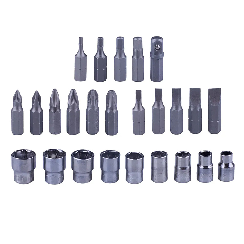 High Precision Bits & Sockets: Equipped with 16pcs 25mm screwdriver bits (suitable for Phillips, Slotted, Torx, etc.) and 10pcs 1/4" standard sockets, the set provides comprehensive compatibility for almost all daily screw and fastener types.