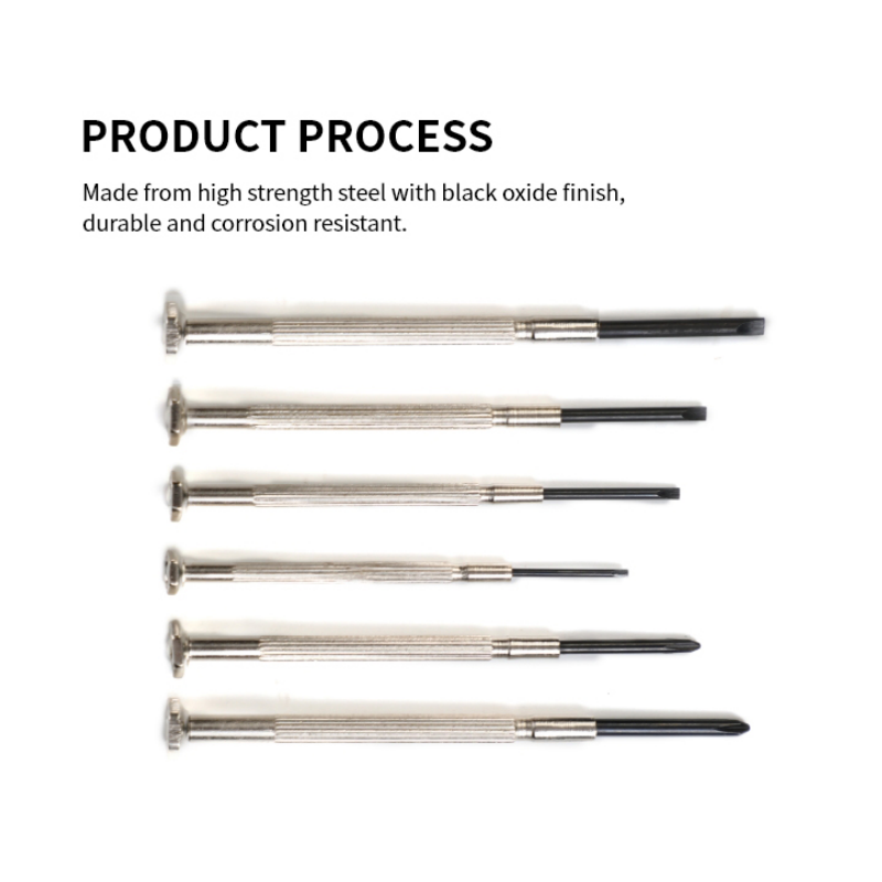 6 Different Size: 2Pcs phillips sizes (#0, #1); 4Pcs flathead sizes (1.4mm, 2.0mm, 2.4mm, 3.0mm); The mini screwdriver set is a good choice for watch, electronics, jewelry, eyeglass repair and other small screw fixation