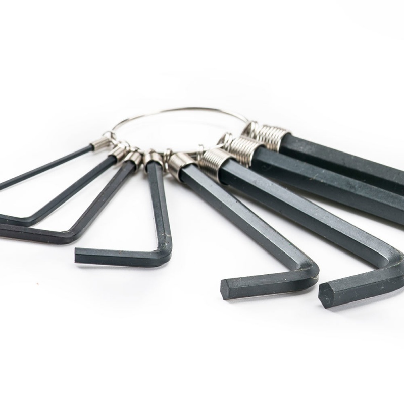 This hex key set features premium high carbon steel construction, delivering exceptional hardness, durability and reliable performance for frequent high-torque use. Its L-shape design offers great leverage, easy access to tight spaces, and comfortable grip to reduce hand fatigue. Compact, lightweight and equipped with a keychain for easy carrying and organization, it suits mechanics, DIY lovers and bike owners, ideal for furniture assembly, bicycle maintenance, machinery repair and various daily tasks with multiple sizes available.