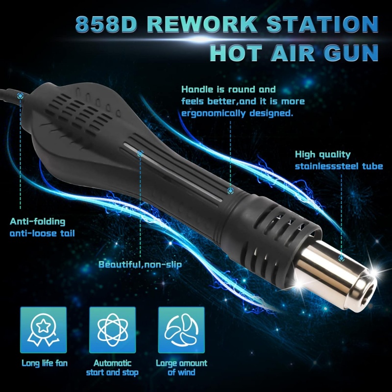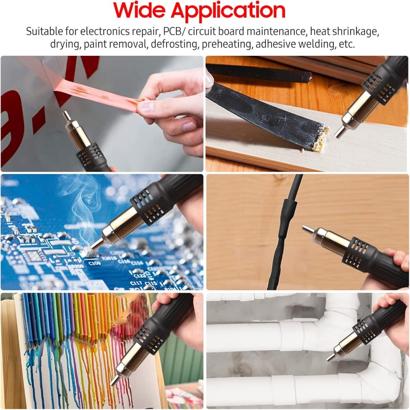 Wide Application:This portable desktop hot air desoldering station is suitable for electronics repair, PCB/ circuit board maintenance, heat shrinkage, drying, paint removal, defrosting, preheating, adhesive welding and so on.
