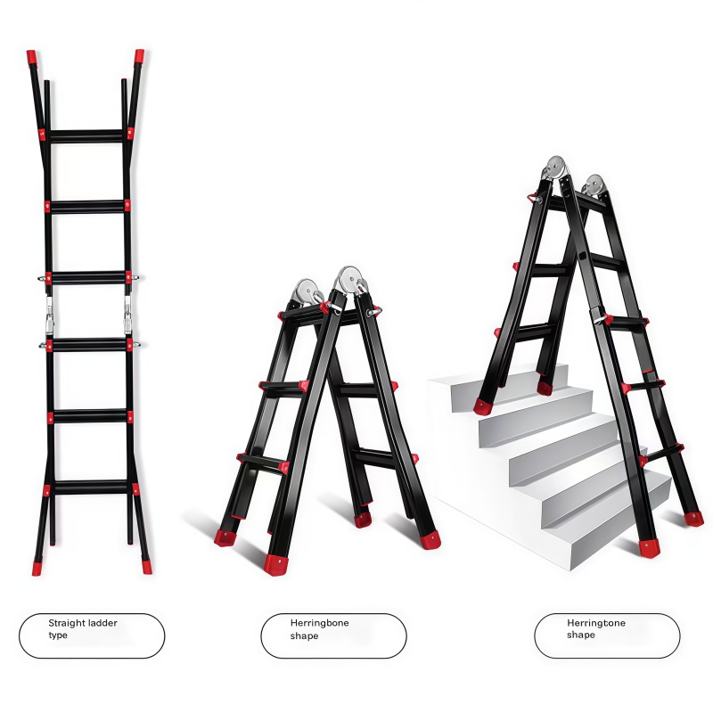 Multi-functional folding: It can flexibly change its shape to meet various usage scenarios such as straight ladders and A-frame ladders, and adapt to different operation requirements, such as home light replacement and outdoor construction