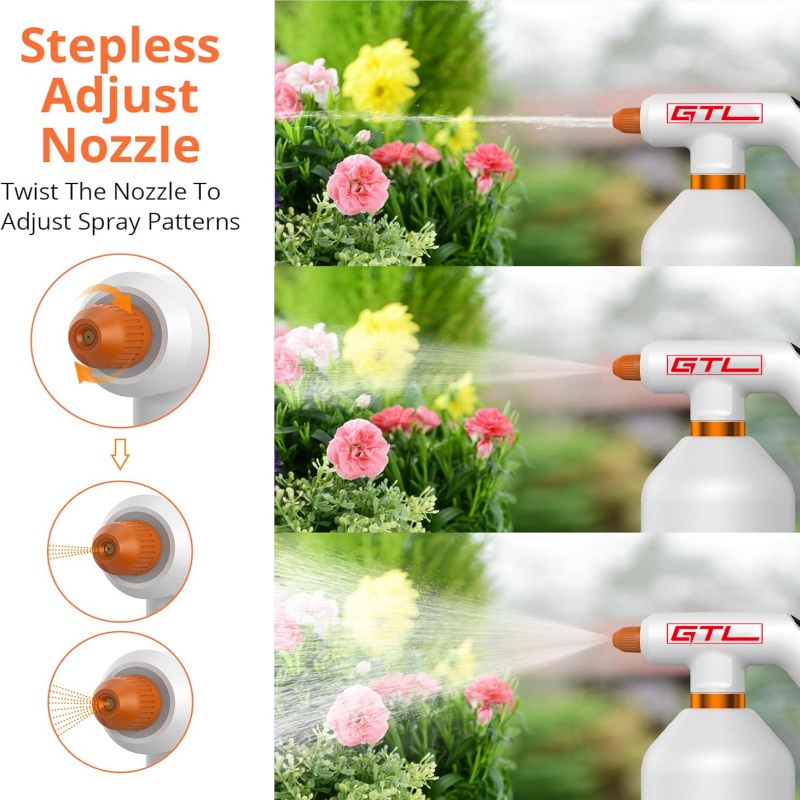 Stepless Adjustment:This Automatic Spray Bottle Very Flexible, 360-degree rotation,The spray mister nozzle position has LED aperture, more refined and practical,Automatic mister can adjust the water spray state from water column spray to fine mist state, expand the spray range of spray bottle for plants, meet your different needs, and better apply to various scenarios.