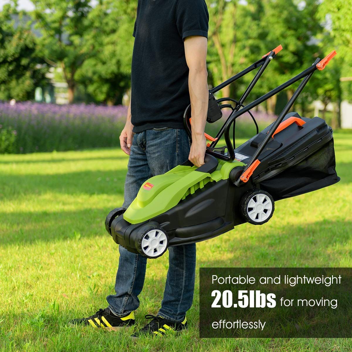 Easy Operation & Storage: Features a push-button start for hassle-free use, with no messy oils or gasoline required. The hard-top grass catcher detaches easily for convenient disposal. Its foldable handle saves storage space and simplifies storage.