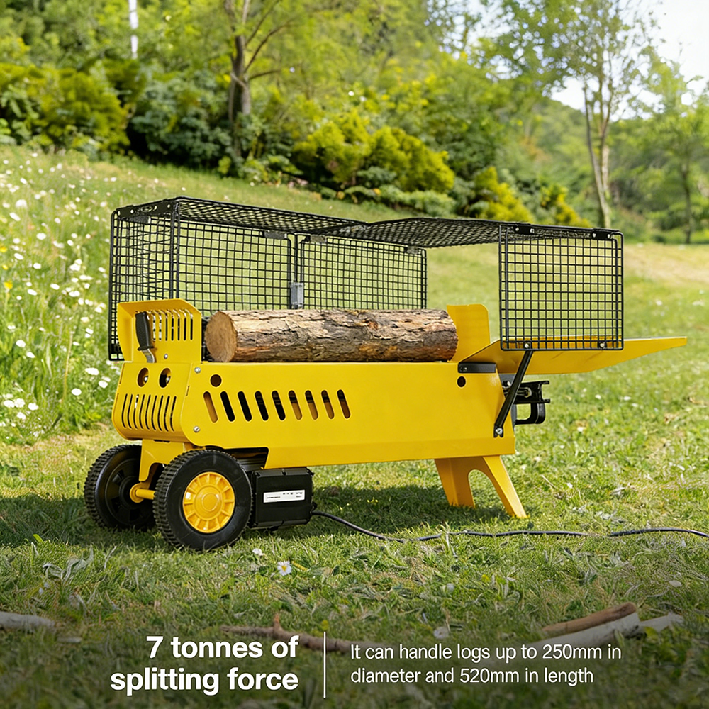 Powerful 7-Ton Splitting Force: The 2300W electric motor delivers reliable 7-ton force, effortlessly splitting logs up to 520mm in length and 250mm in diameter, ideal for dense hardwoods.