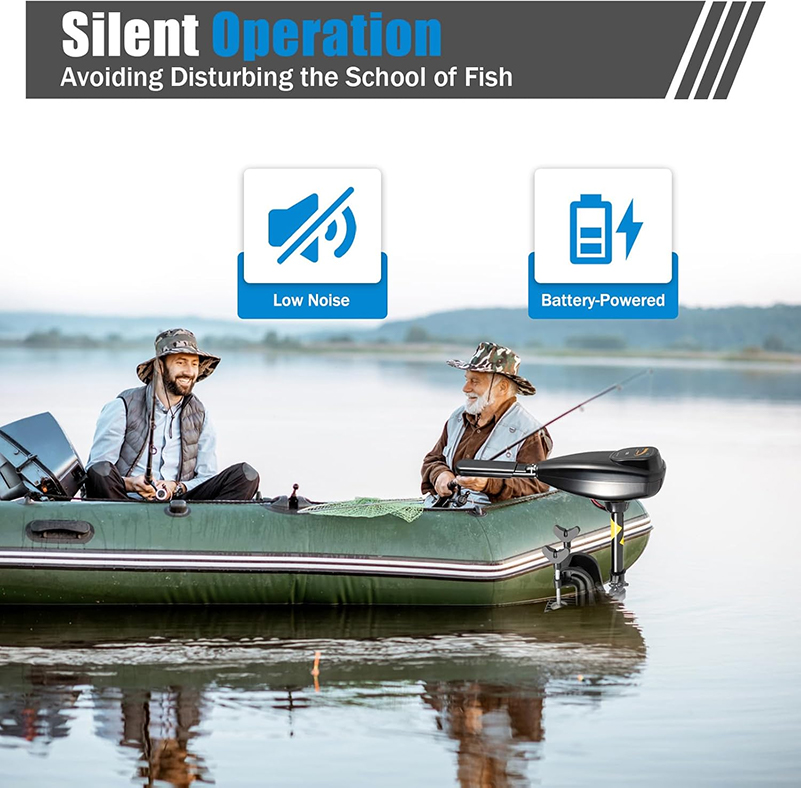 This 12V electric trolling motor provides excellent power and efficiency for any boater. The High Quality Build Allows The Motor To Run All Day Long Without Overheating, the trolling motor runs stably with less noise and will not disturb the fish.