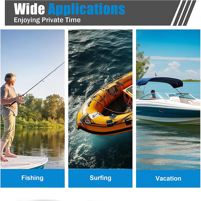 Wide Applications: Small boat trolling motor is suitable for kinds of boats with 2-3 People, such as inflatable boats, canoes, and aluminum fishing boats, widely used in fishing, aquaculture, outdoor adventure, etc