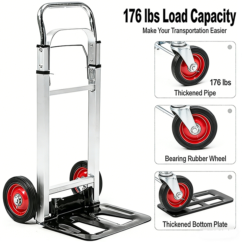 The GTL foldable hand truck has excellent load-bearing capacity, with a maximum load weight of 180lbs sufficient to meet daily transport demand; The folding design will prevent it from taking up too much space when idle