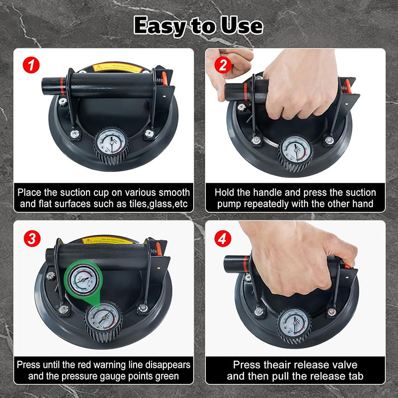 Equipped with a built-in pressure gauge, this suction cup lifter allows you to easily monitor suction levels, ensuring optimal performance and secure lifting at all times.