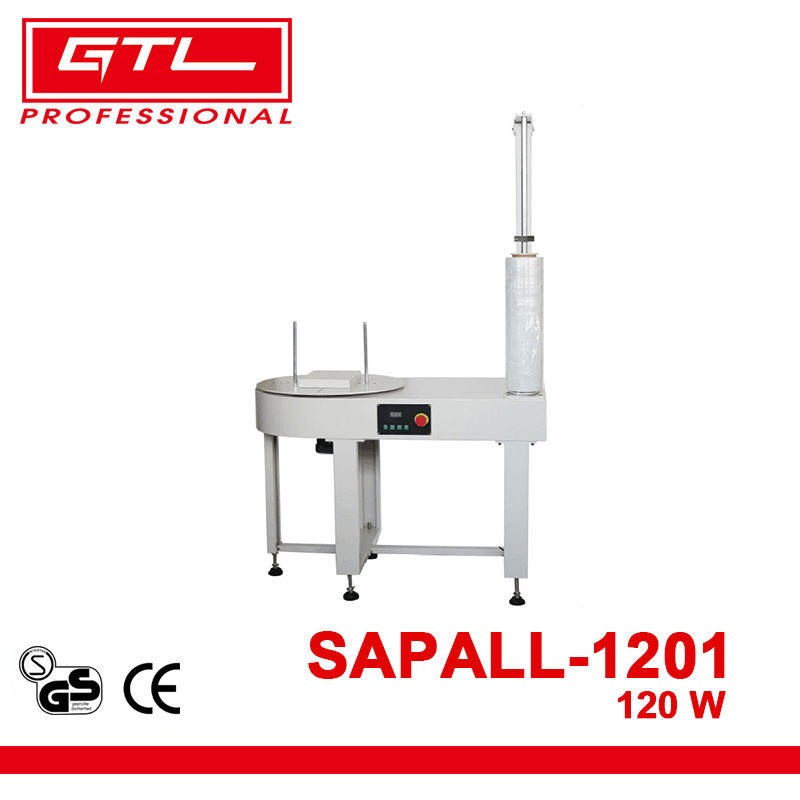 This semi-automatic palletizer combines versatility and efficiency for commercial packaging. Operating on 220V AC single-phase power (60Hz, 120W), it handles packages up to 900x900x900mm with a 30kg max load. Compatible with LLDPE film rolls (100-900mm width, 17-35µm thickness) and standard 76mm inner core rolls, it features a 30 RPM turntable for consistent wrapping. With a compact 1150x600x1861mm design and 120kg weight, it's space-saving, durable, and ideal for businesses seeking reliable, cost-effective palletizing solutions