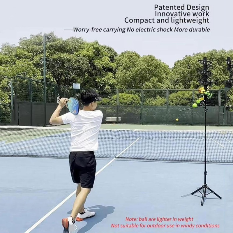 The Pickleball Machine is your ultimate multi-sport training partner for pickleball, tennis, and baseball. Designed for athletes of all levels, it supports serve, baseline stroke, and batting practice. Featuring a non-powered, portable design, it's easy to set up and use indoors or in calm outdoor conditions. With a 11-ball capacity, it enables uninterrupted solo practice to build muscle memory. Crafted from sturdy metal with a wide, stable base, it withstands countless training sessions-helping you refine form and timing effortlessly.