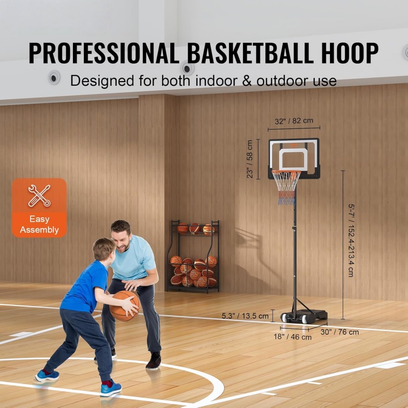 Resistant to Any Weather: Designed for both indoor and outdoor use, this basketball hoop & goal features a premium PC backboard, a durable 0.22 lb nylon net, and rustproof steel pole. These components ensure that the hoop remains resilient in the face of sun, rain, or snow, providing long-lasting performance and durability.