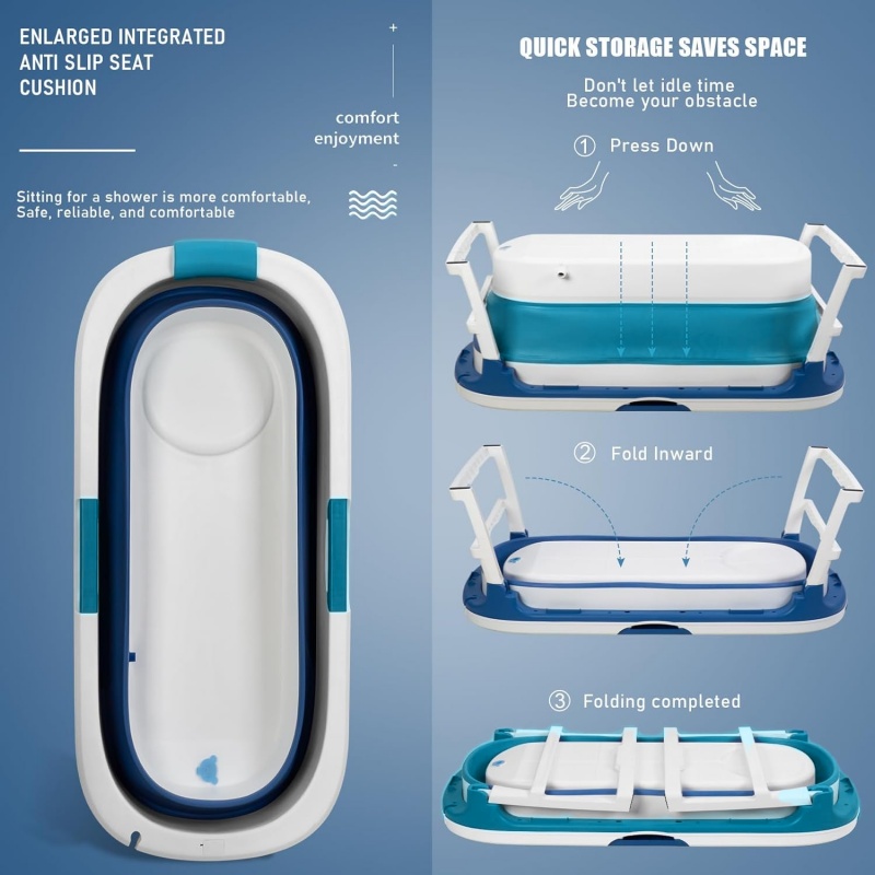 Unwind in your personal spa with this Portable Folding Bathtub. Designed for adults, it combines a spacious 200-liter capacity with a supportive, 100kg-rated frame. The highlight is its practical portability-it folds flat for compact storage and easy transport. Enjoy added luxury with the included neck support, foot massager, and soap dish. Safety and convenience are ensured with a non-slip foot and a design that fits most bathrooms. Simple to assemble without tools, this innovative bathtub transforms any space into a relaxing retreat in moments. Experience comfort and convenience redefined.