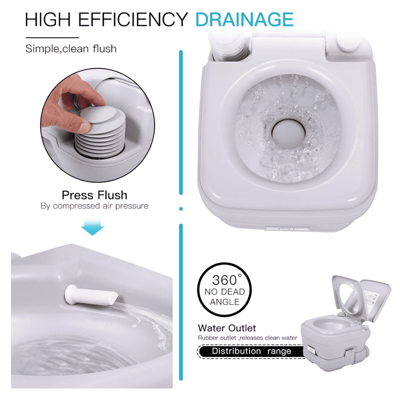 Multi-functional Toilet: Our portable cassette toilet could be used in a home, caravan, trailer, or boat, and also could be used for camping, hospital, outdoor events, this camping toilet will also be suitable for kids or the elderly who can not take good care of themselves in wild camping or long-distance travel