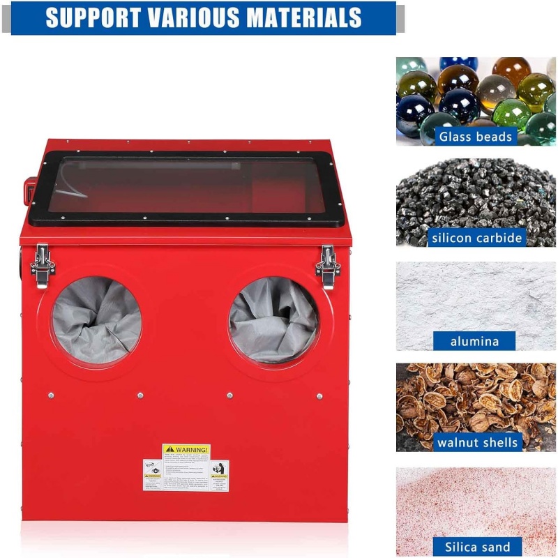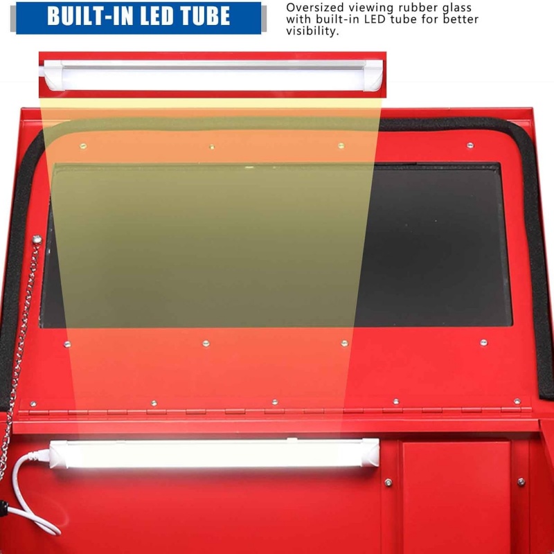 Enhanced Visibility and Precision: The generously sized viewing window (565mm x 260mm) and integrated internal light provide excellent visibility of the workpiece, allowing for precise control and monitoring of the blasting process.