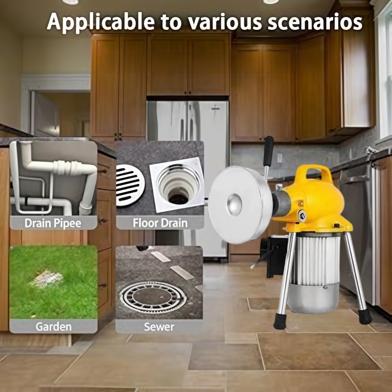 Core Performance: 400W induction motor (220V~60Hz) provides stable power for tackling tough clogs; 20m flexible cable reaches deep into long pipes.