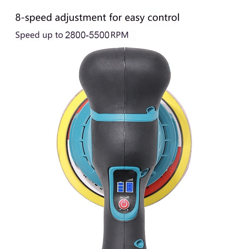 UPGRADE BRUSHLESS MOTOR& 8-SPEED ADJUSTMENT: Dual action polisher has a built-in high-efficiency Brushless Motor, low noise, power, enhanced performance which can provide a maximum speed of 5500 RPM. With 6-speed settings available, you have the flexibility to adjust the buffing machine according to your needs. Whether it's the low speed for gentle waxing and buffing, medium speed for thorough polishing and cleaning, or high speed for removing stubborn defects and oxidation, this orbital polisher has you covered.