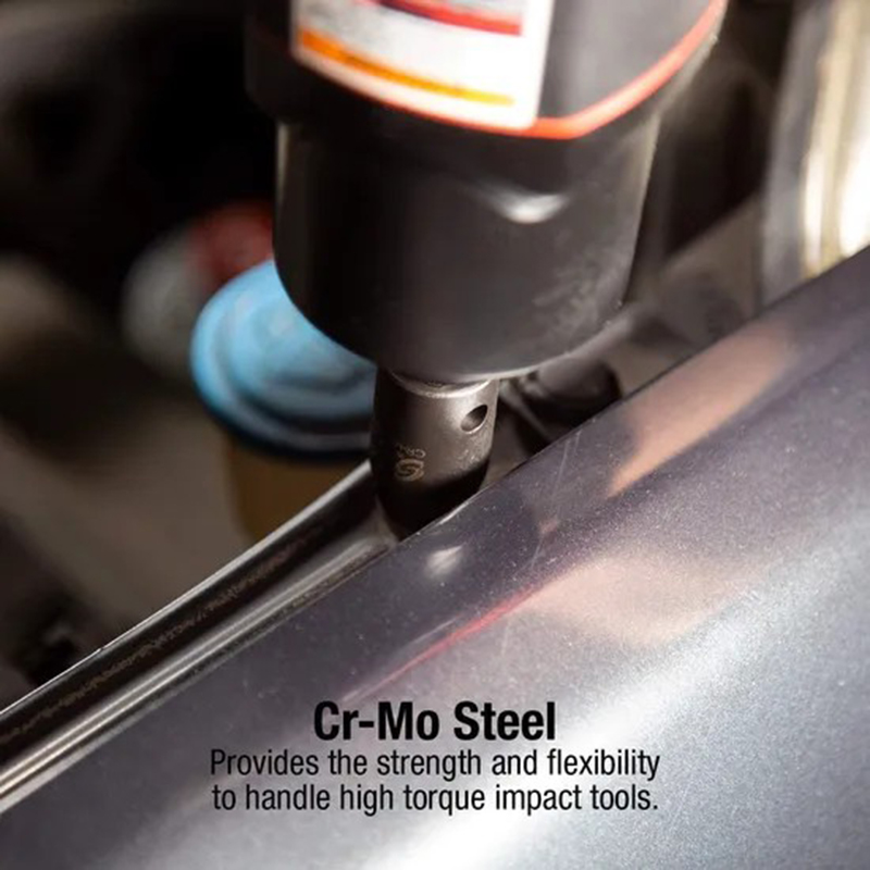 Material: CRV (Chromium-Vanadium Steel) socket, which offers superior strength, toughness, and wear resistance. It can withstand high torque and repeated impacts, making it durable for automotive repair, heavy machinery maintenance, and other demanding applications.