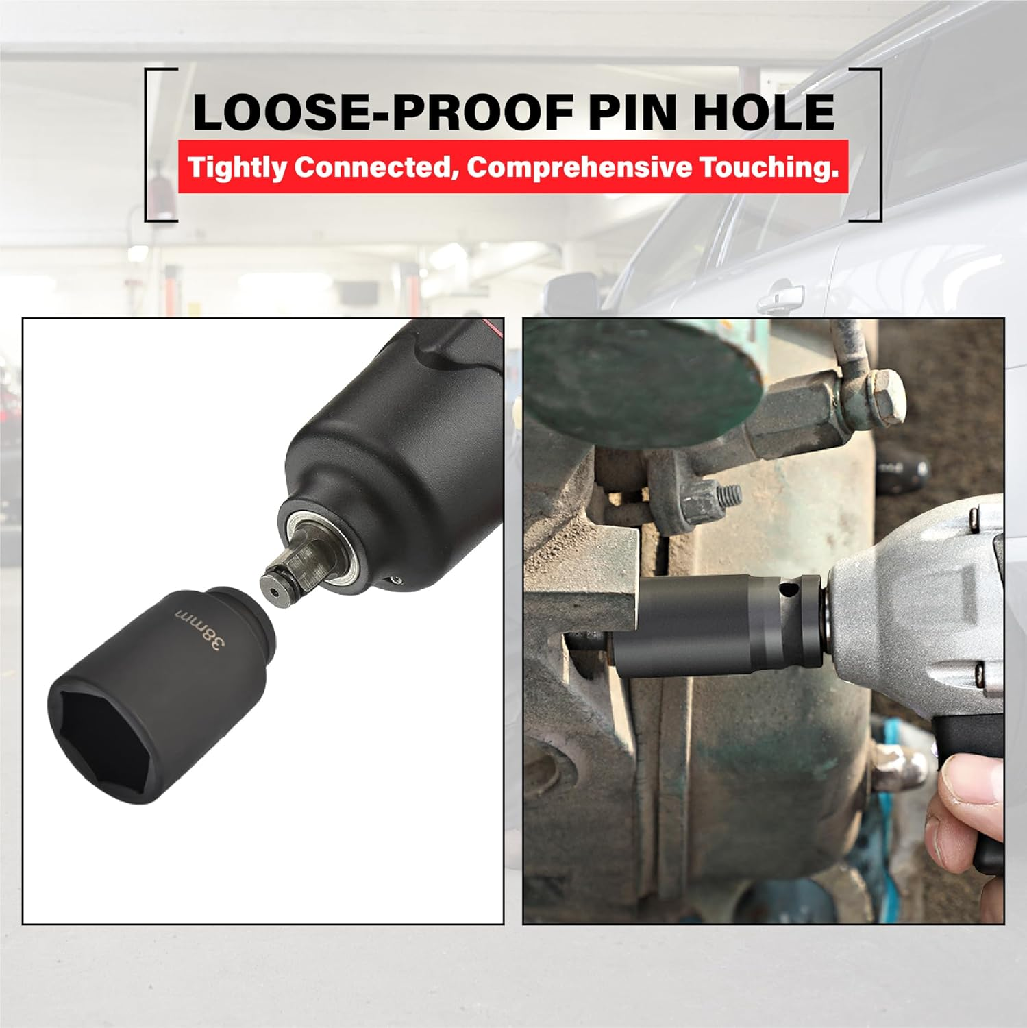 High-Quality Material: Sockets undergo utilizing drop forging and heat treatment on chromium molybdenum steel; black phosphorescent finish, that deeply hardens the rust-proof socket; enhances its impact resistance while improving toughness and durability