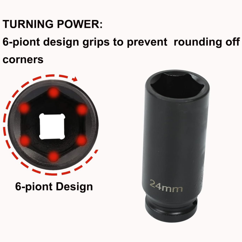 High-Precision Process: The high torque metric socket with 6-point 1/2” drive design with ensures a tight connect, preventing rounded corners and bolt detachment; Which reduces damage to the axle nut for guarantees excellent completion of work