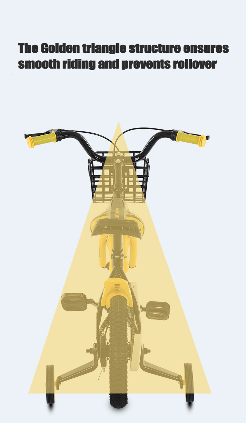 Rollover-Proof Frame Structure: The scientific golden triangle frame design lowers the bike's center of gravity, completely eliminating the risk of tipping or rolling over—even when kids make sharp turns, ride at varying speeds, or navigate bumpy, uneven outdoor terrain.