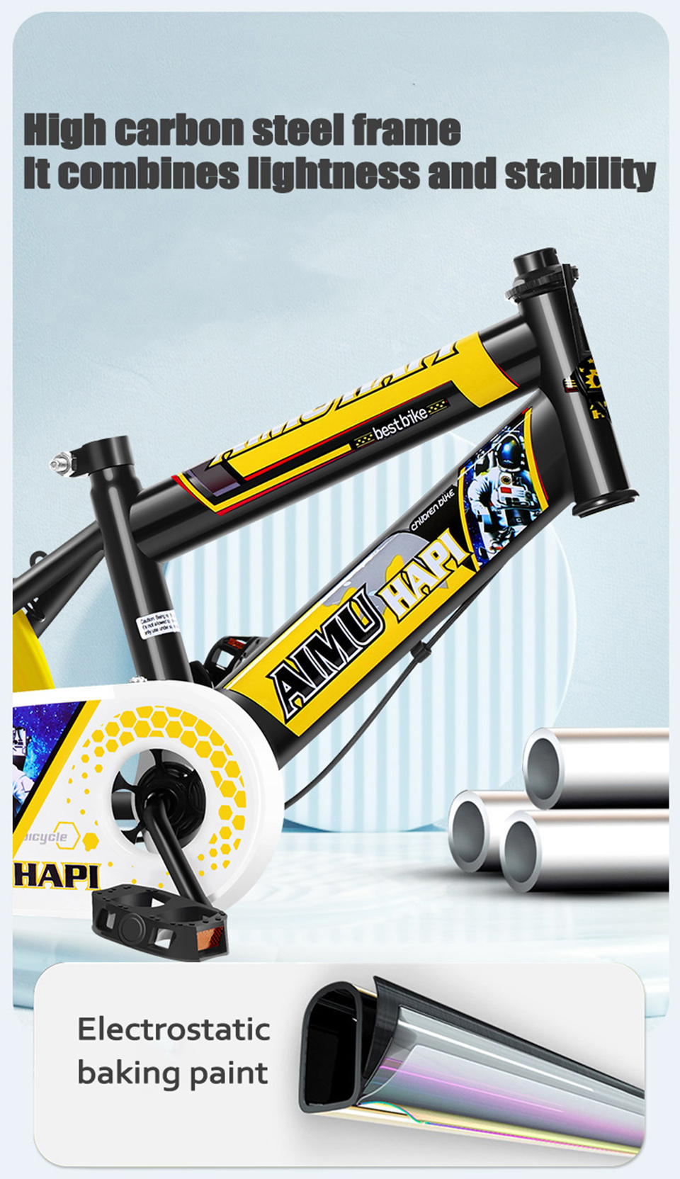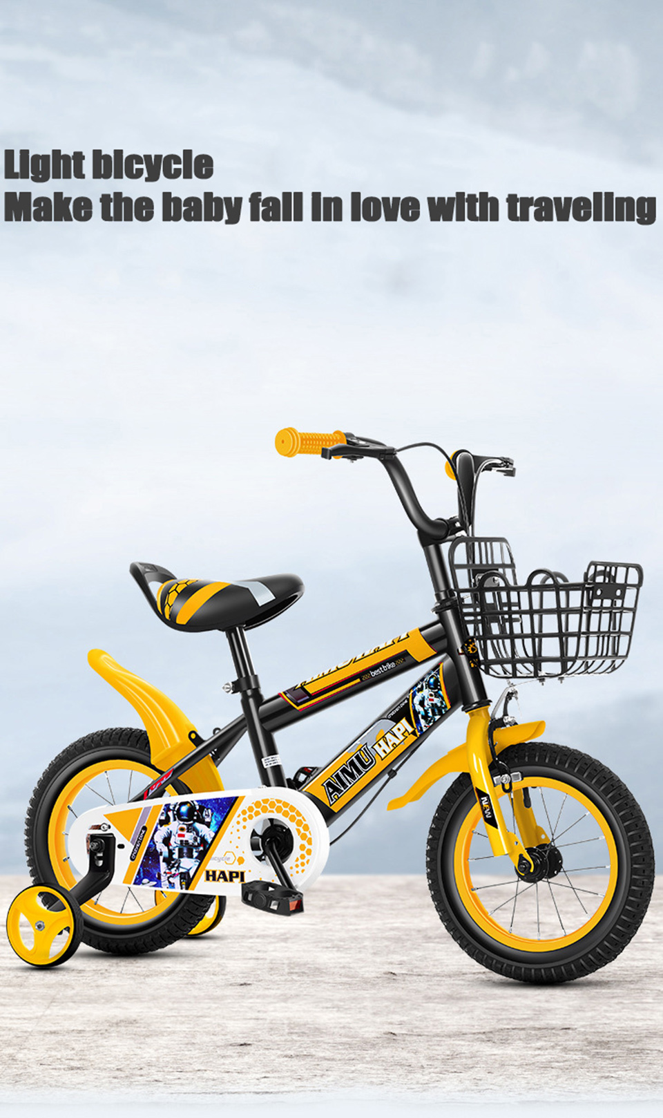 Introducing this Light Children's Bicycle—the perfect ride to make your kid fall in love with outdoor adventures! Designed for 8-16 year olds (height ≥80cm), this bike combines playful style with durable performance: it features a sleek black-and-yellow color scheme (with 2 other color options) and eye-catching astronaut-themed decals that kids will adore.