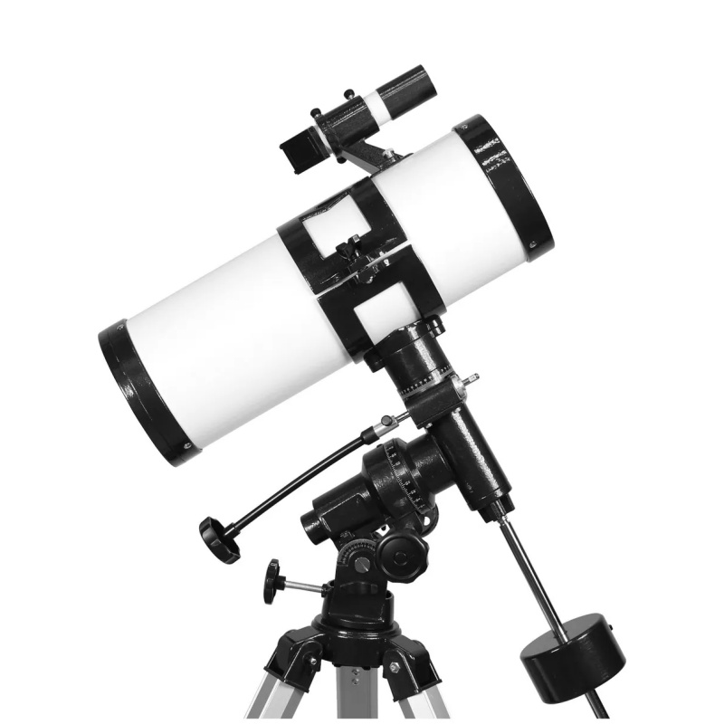 This Newtonian Equatorial Telescope 114×1000 with tripod offers 50×-1500× magnification, equipped with K10mm/K25mm eyepieces and a 6×30mm finder scope. Its 114mm concave objective mirror and 1"" resolving power ensure superior light collection and sharp imaging. The equatorial mount and aluminum tripod realize stable star-tracking, ideal for all levels of astronomy lovers to observe celestial bodies.