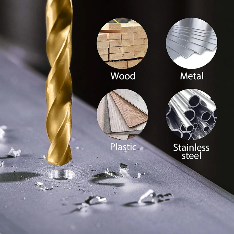 High-Quality: Durable Material Made of premium steel with a corrosion-resistant gold TiN coating, this set ensures superior toughness and a long service life. The smooth surface reduces friction during drilling, keeping bits cool and preventing breakage even under heavy use.