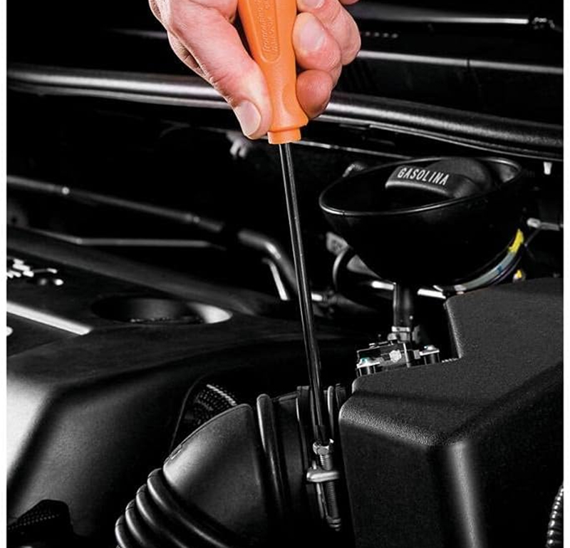 Ergonomic Non-Slip Handle: The ergonomic orange handle is designed for a comfortable, firm grip, even in wet or oily conditions, minimizing hand strain and maximizing torque for efficient screwdriving.