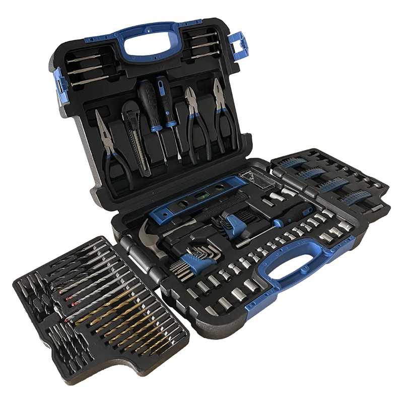 Ideal for both professionals and DIY enthusiasts, the 145-piece tool kit offers versatile functionality with carbon steel bits, heat-treated sockets, and multi-standard tools, covering drilling, fastening, measuring, and cutting needs for wood, metal, and more.