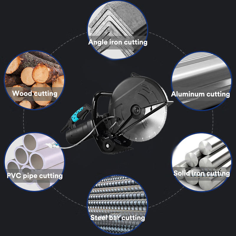 This 2800W multi-function cutting saw is engineered for heavy-duty cutting tasks, featuring a 355mm diameter blade and ±45° adjustable clamp to deliver precise cuts on diverse materials.