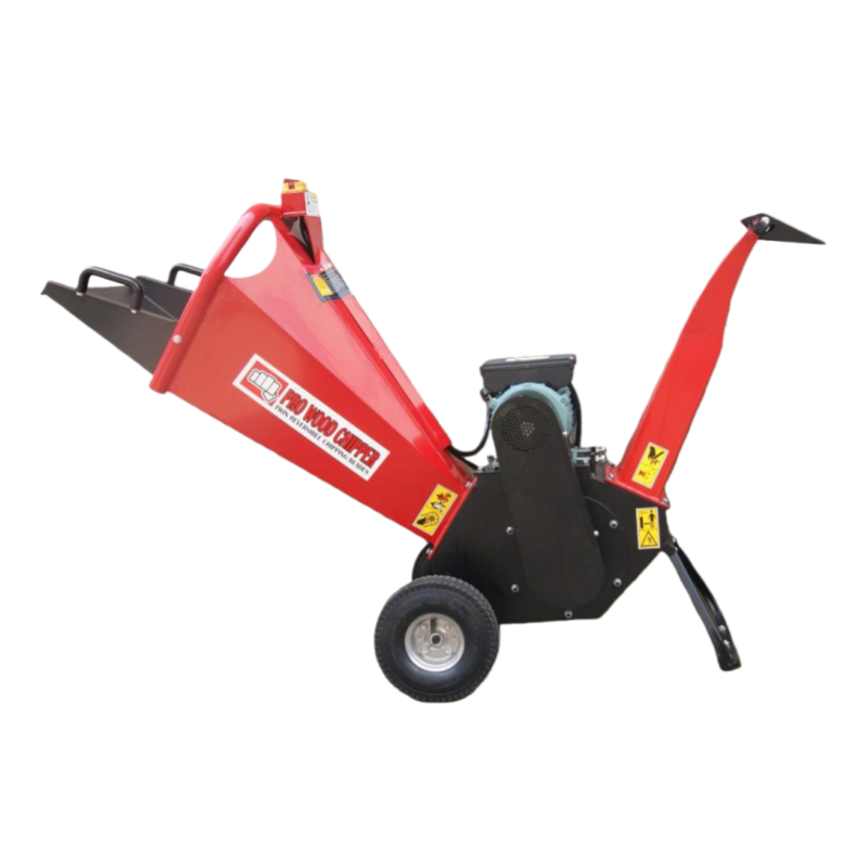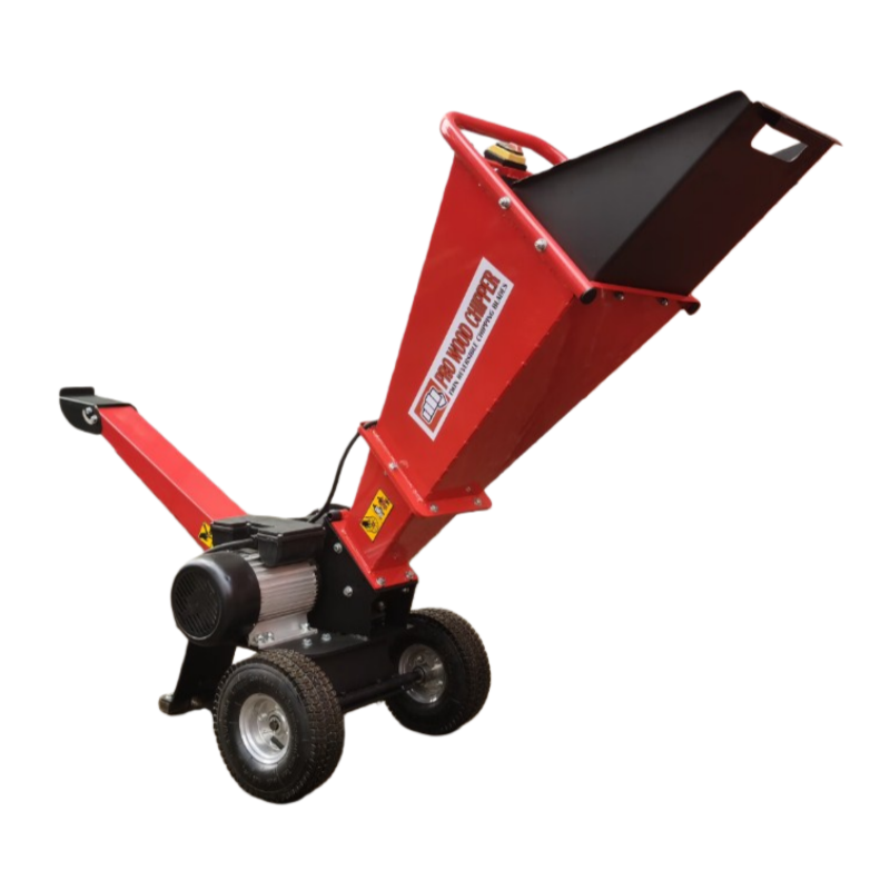 The Electric Garden Shredder is a high-performance solution for demanding yard work. Its powerful 2200W induction motor effortlessly handles branches up to 80mm in diameter. Durability is ensured by a twin reversible blade system and dual V-belt drive. User-centric features include an advanced centrifugal clutch for smooth starts, an adjustable discharge chute for controlled chip collection, and large 10" wheels for easy transport. Designed for safety and convenience, it comes with a 1-meter cord featuring a VDE waterproof plug. This robust shredder combines power, reliability, and practical design to efficiently manage garden waste.