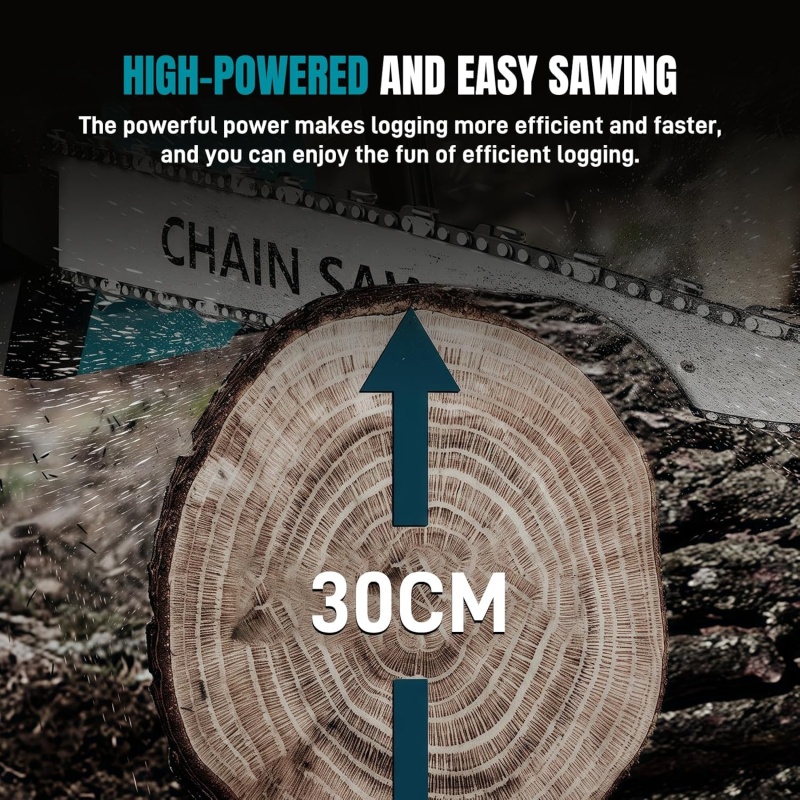 Long battery life: The cordless chainsaw comes with a battery and charger. The 4.0Ah battery doubles the battery life to over 30 minutes (more than 120 charges per time), and the power indicator on the battery tracks the battery level. The fast charger helps to quickly restore the battery.