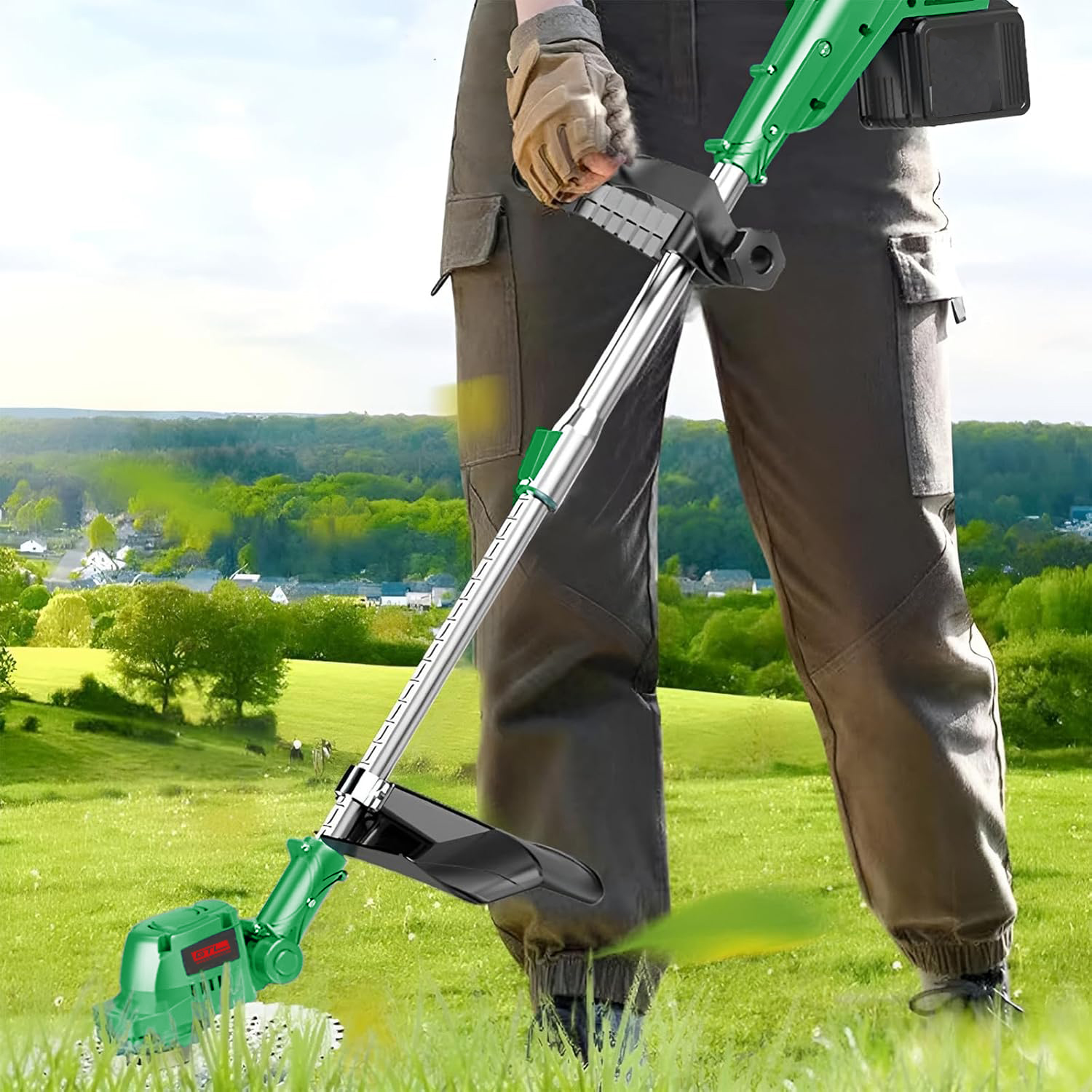 Adjustable Trimmer Head: our Cordless Grass Trimmer can easily navigate around edges of the lawn, slopes, and tight spaces. This design ensures you can effectively maintain clean lawns, paths, and flower beds.