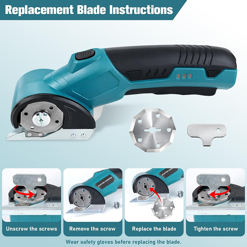 This lightweight cordless electric scissor features a 4V 2000mAh built-in rechargeable battery, delivering stable constant speed up to 300 cuts per minute. It comes with an LED power indicator and Type-C fast charging design for easy daily use and long working time.