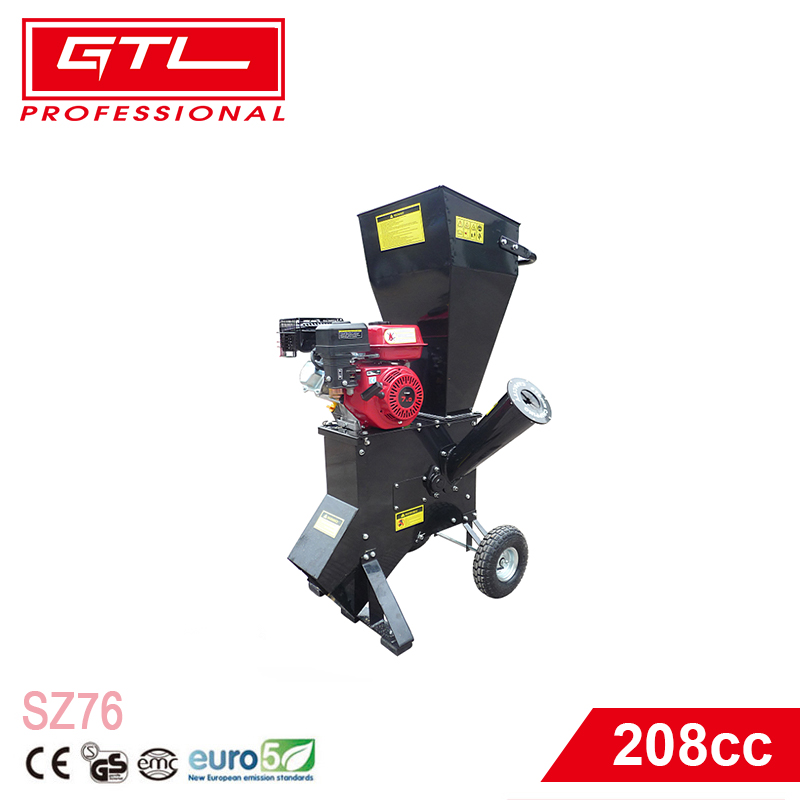 GTL SZ76 is a professional 7.0HP gasoline wood chipper with a 76mm chipping capacity, ideal for efficient branch and wood debris processing in gardening and landscaping.
