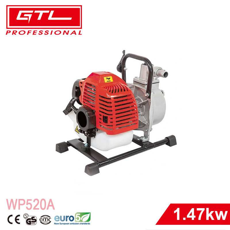 GTL WP520A is a 1.47kW gasoline water pump with a 51.7CC 1E44F-5 engine, featuring 15m³/h flow, 35m lift, and 8m suction length, ideal for agricultural, industrial, and emergency water transfer.
