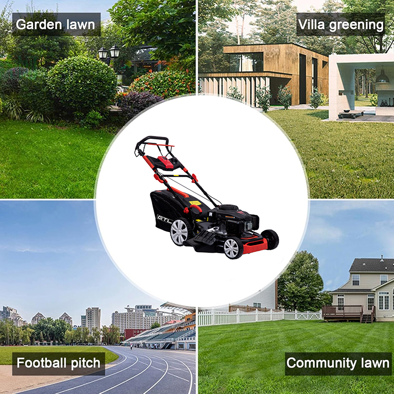 With 7-inch front wheels and 10-inch rear wheels for stable movement, this mower supports rear discharge, side-discharge, and mulching functions. It also comes with a 60L half-plastic grass catcher for efficient grass collection, along with a 1.0L fuel tank and a 0.5L oil capacity to ensure prolonged operation.