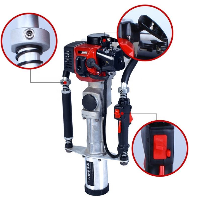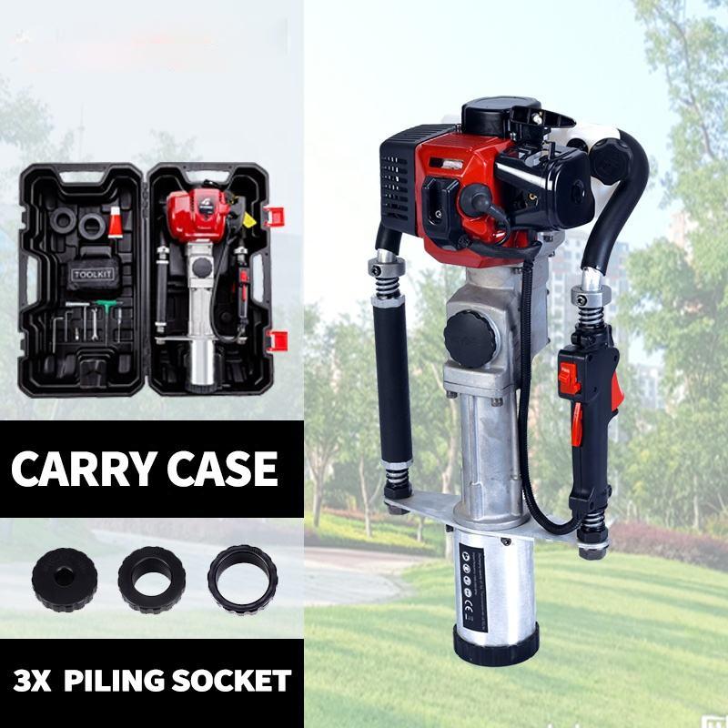 This is a 2-stroke, air-cooled gasoline-powered impact driver with a 33cc displacement, delivering 1000W power at 7000r/min and 30J impact energy, ideal for heavy-duty pile driving and construction tasks.