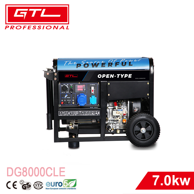 GTL DG8000CLE is a 7.0kW open-type diesel generator with a 1-cylinder, 4-stroke air-cooled diesel engine, featuring electric start and a 13L fuel tank, suitable for various power backup scenarios.