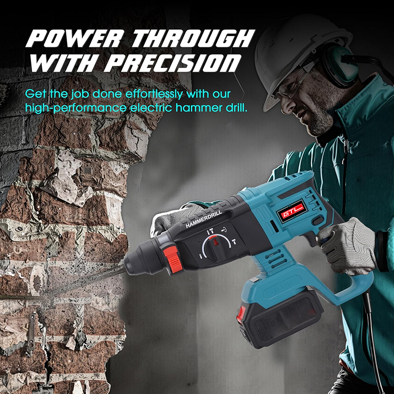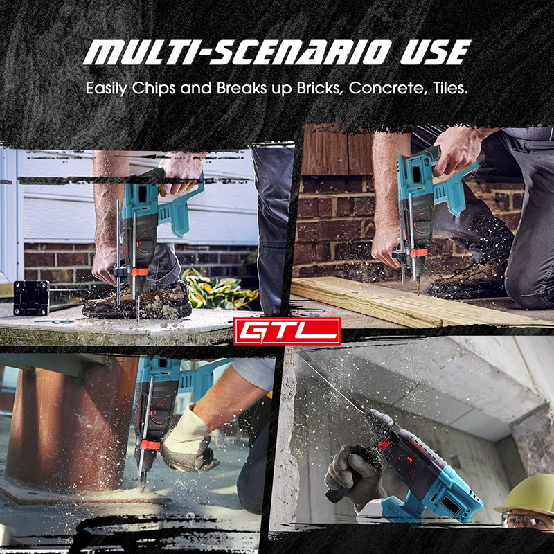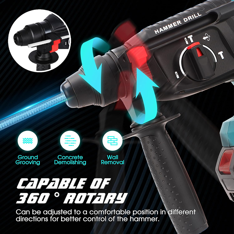 Cordless Power Drill for Ultimate Portability: Experience unmatched convenience with this cordless power drill design, compatible with Makita 18-21V batteries. Whether you're working indoors, outdoors, or on the go, enjoy the flexibility to tackle a variety of jobs without the hassle of cords. Perfect for those who need a powerful, portable solution on any job site, this demolition hammer offers the ideal mobility.