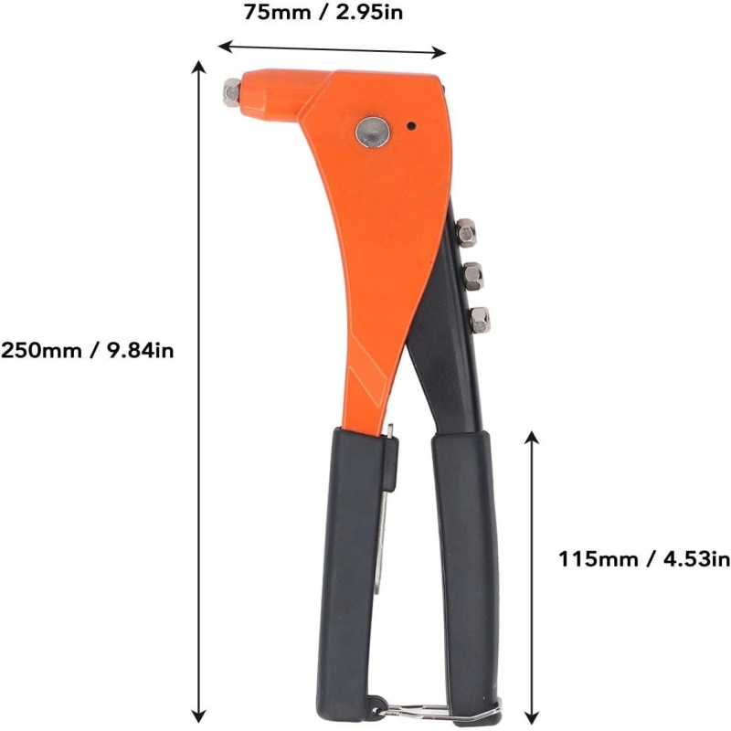 Labor Saving Lever Mechanism:With a higher leverage ratio, this rivet gun requires less effort to operate, while its safety lock ensures easy storage and carrying.